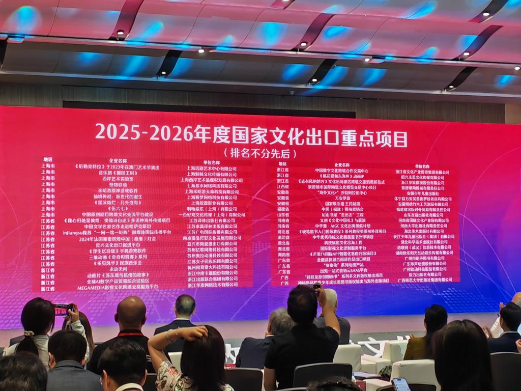 此外,由商务部、中宣部、文旅部、广电总局共同认定的“2025—2026年度国家文化出口重点企业和重点项目”也在此次论坛上发布,共有404家企业与121个项目入选。