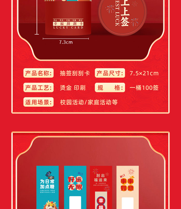 抽签筒(上上签)+事事如意50张+好运无限50张